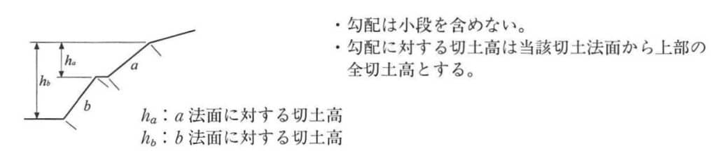 2.土質構成などにより単一勾配としないときの切土高および勾配の考え方は以下とする。