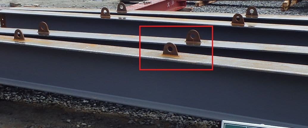 鉄骨を吊り上げる時に使用する「吊ピース」などの仮設物も