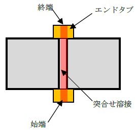 始終端の部分をエンドタブ内に納めて、母材自体は溶接の