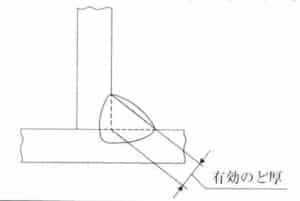 actual throat thickness (すみ肉のー)有効のど厚 設計上用いるすみ肉溶接に内包される最大の三角形の高さ。