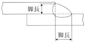 fillet weld size (すみ肉のー)脚長(きゃくちょう) 継手のルートからすみ肉溶接の止端までの距離。