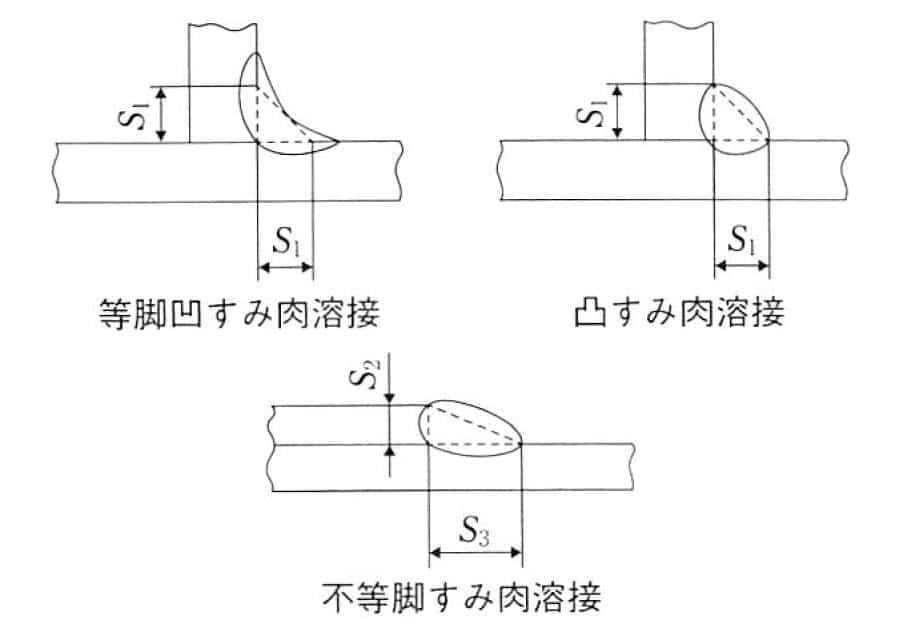 注記2 等脚の場合には、すみ肉溶接金属の横断面内に描くことのできる最大直角二等辺三角形の等辺の長さ (S1)であり、不等脚の場合には、すみ肉溶接金属の横断面内に書くことのできる最大直角三角形の直角を挟む2辺の長さ (S2,S3) である。